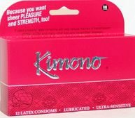 Kimono Lubricated Condoms: Features: Form-fit shape, Reservoir tip, 20% thinner than ordinary condoms, Natural rubber latex, Lightly lubricated, Made with advanced Japanese condom technology and engineering. All Kimono condoms exceed all US and international standards for strength and reliability. Each condom is individually, electronically tested for assurance. Read more...