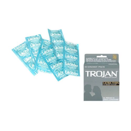 Title : Trojan ULTRA THIN CONDOMS Latex Condoms Lubricated 36 ea and LifeStyles Snugger Fit Premium Latex Condoms Lubricated 48 condoms Safe Sex Kit