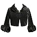 - IRIDESCENT GREY VELVET & SATIN SHRUG/JACKET options 3/4 SATIN BUBBLE/BELL SLEEVES and SHIRRED BUBBLE COLLAR with snap button closure hidden behind SPARKLING RHINESTONE FLOWER ACCENT.